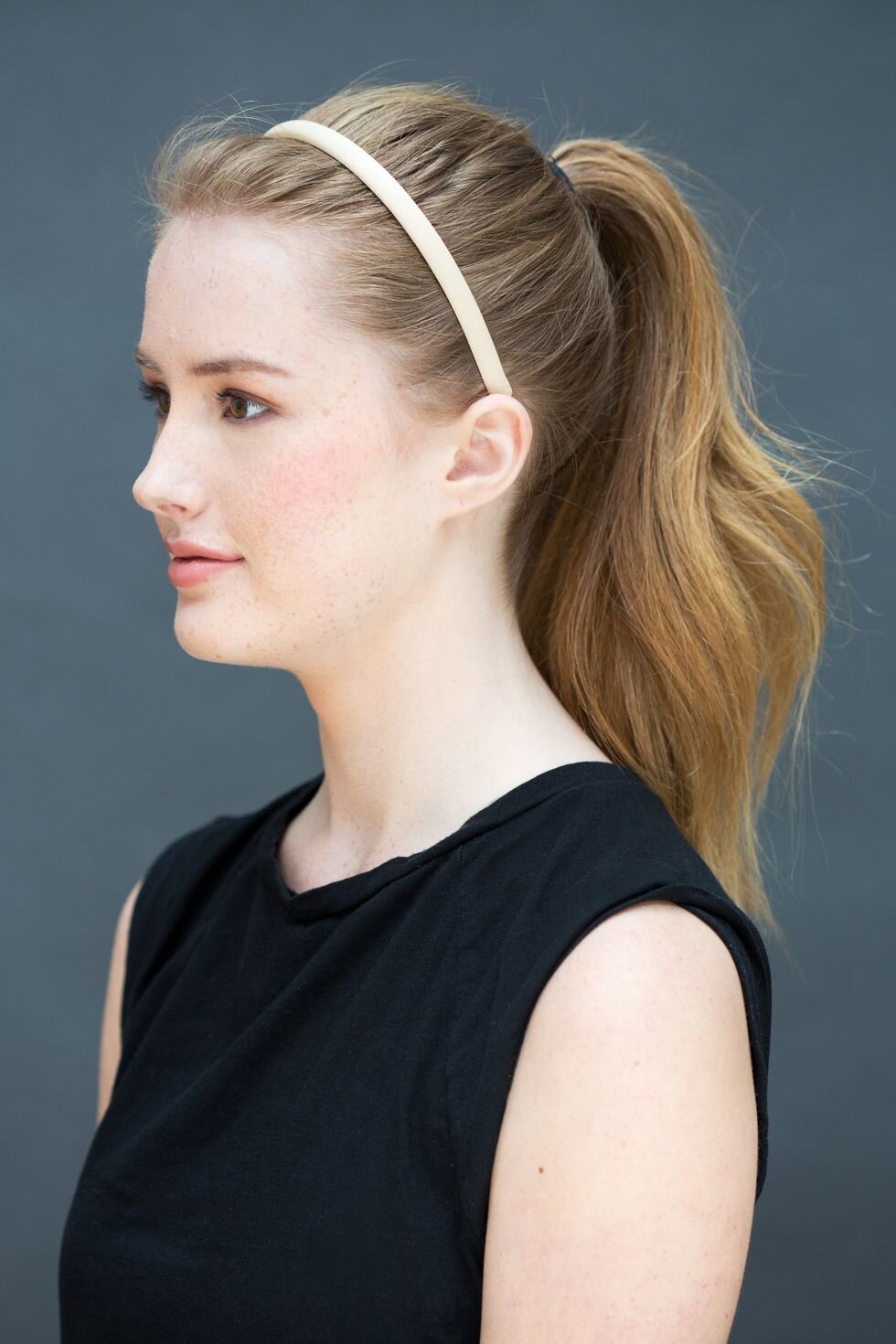 Step 1: Brush your hair up into a high ponytail and pop a headband on, I recommend independent brand, War&Drobe, each band is handmade, and they are designed from sustainable fabrics.